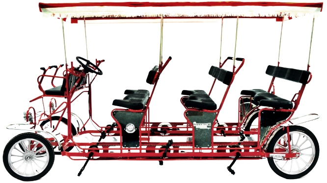 We are currently scheduling dinner tours on Front Street in Cuyahoga Falls, Ohio, on Tuesdays and Wednesdays for up to 6 people on our covered pedal-powered surrey.